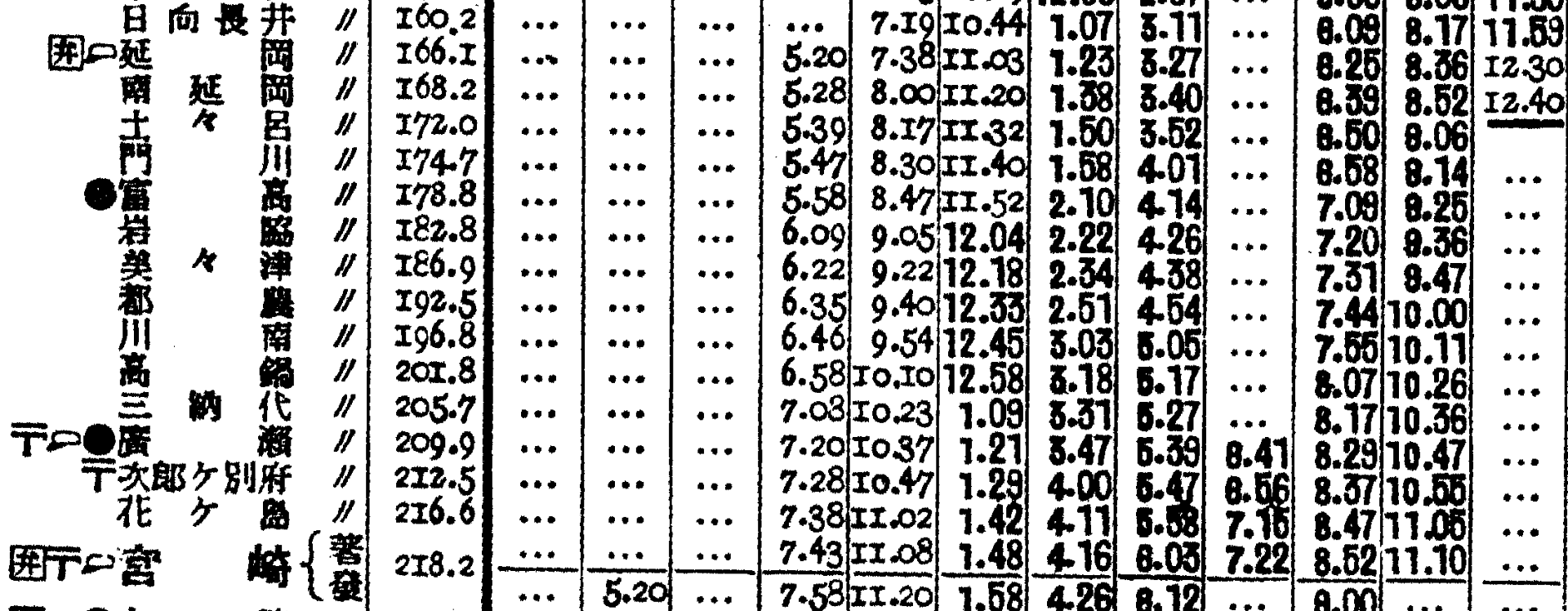 結局上下15便が延岡駅関連となり、結構賑やかだったと思われます。(夜中の12時ころに蒸気機関車が発着するのですから、深夜の延岡駅周辺はかなりうるさかったのではなかろうか?)