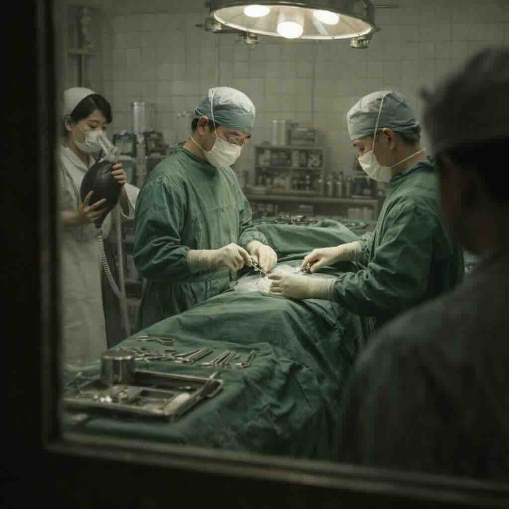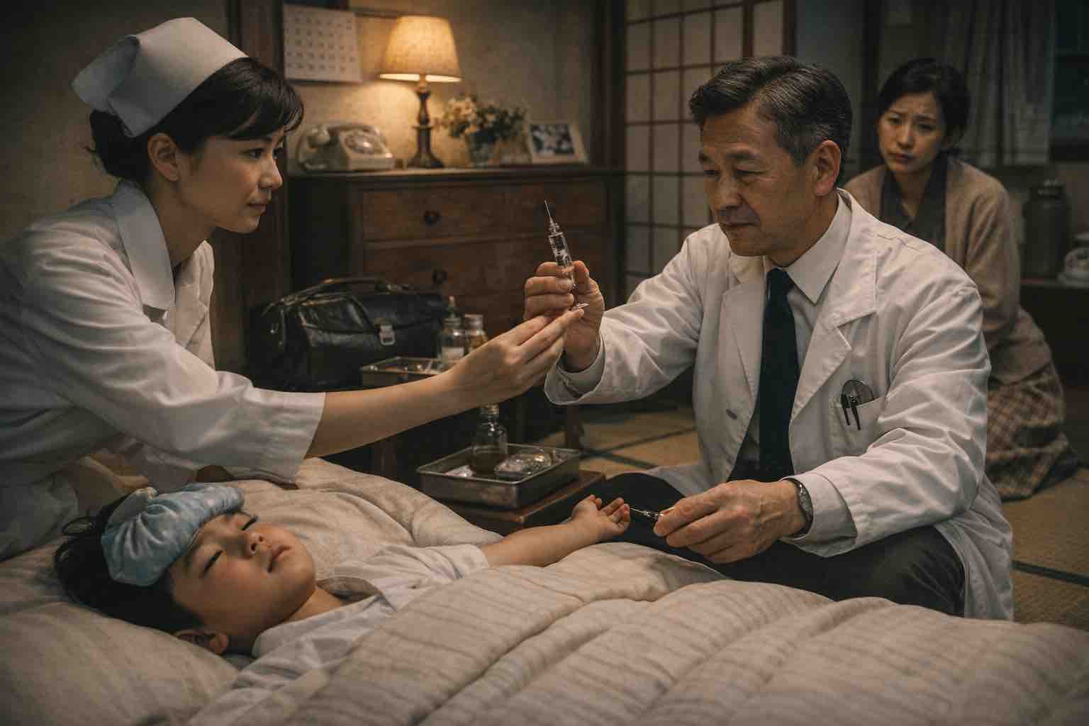 これもAI提案:お医者さんが夜間来てくれるなんでいい時代です。3丁目の夕日のようだ。