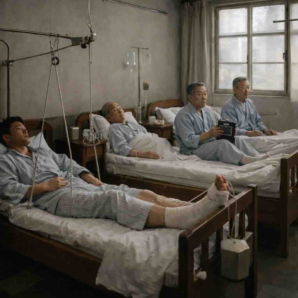 これもAi提案。足にギブスを巻いているのはわかるけど、引っ張っている重さがひどく重そう。まあ雰囲気だけでも・・・