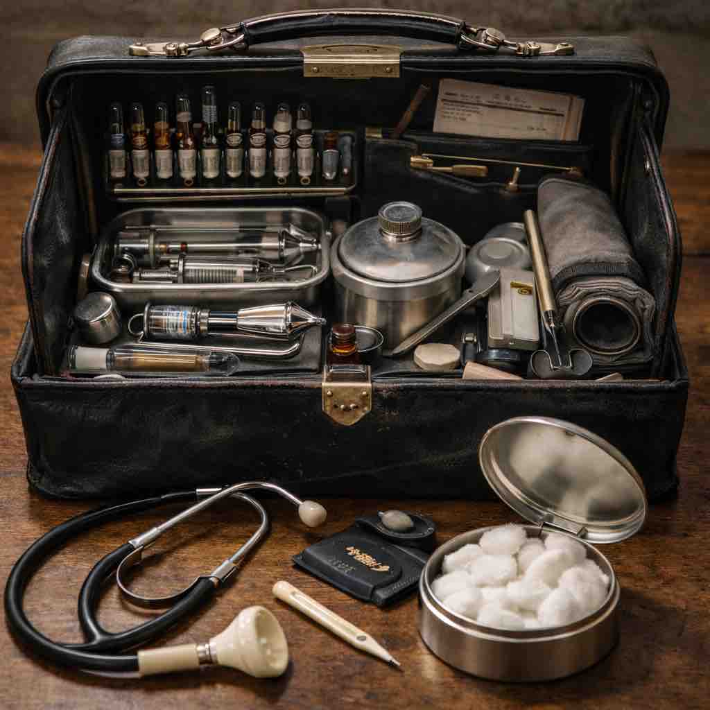 これもAI提案で「往診」をやりたいと:往診かばん。微妙に大げさだけど、こんなん持って往診していたのか当時は?