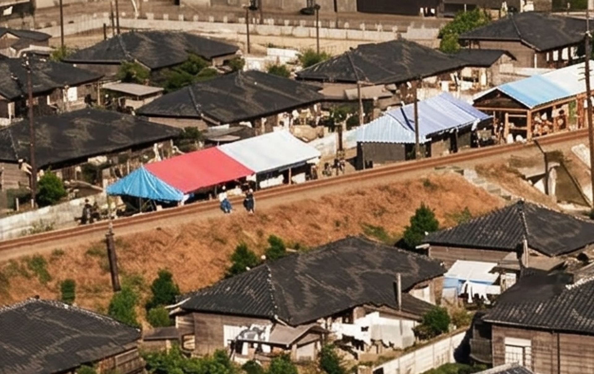社宅だけが明るい灰色の屋根になっているのは、たまたまです。今の駐車場のあたりですが、この社宅の風景は昭和8年から平成初年まで続きました。その後は大きく、大きく変わってしまった。往時の日ノ影線のガードを拡大しておきます。