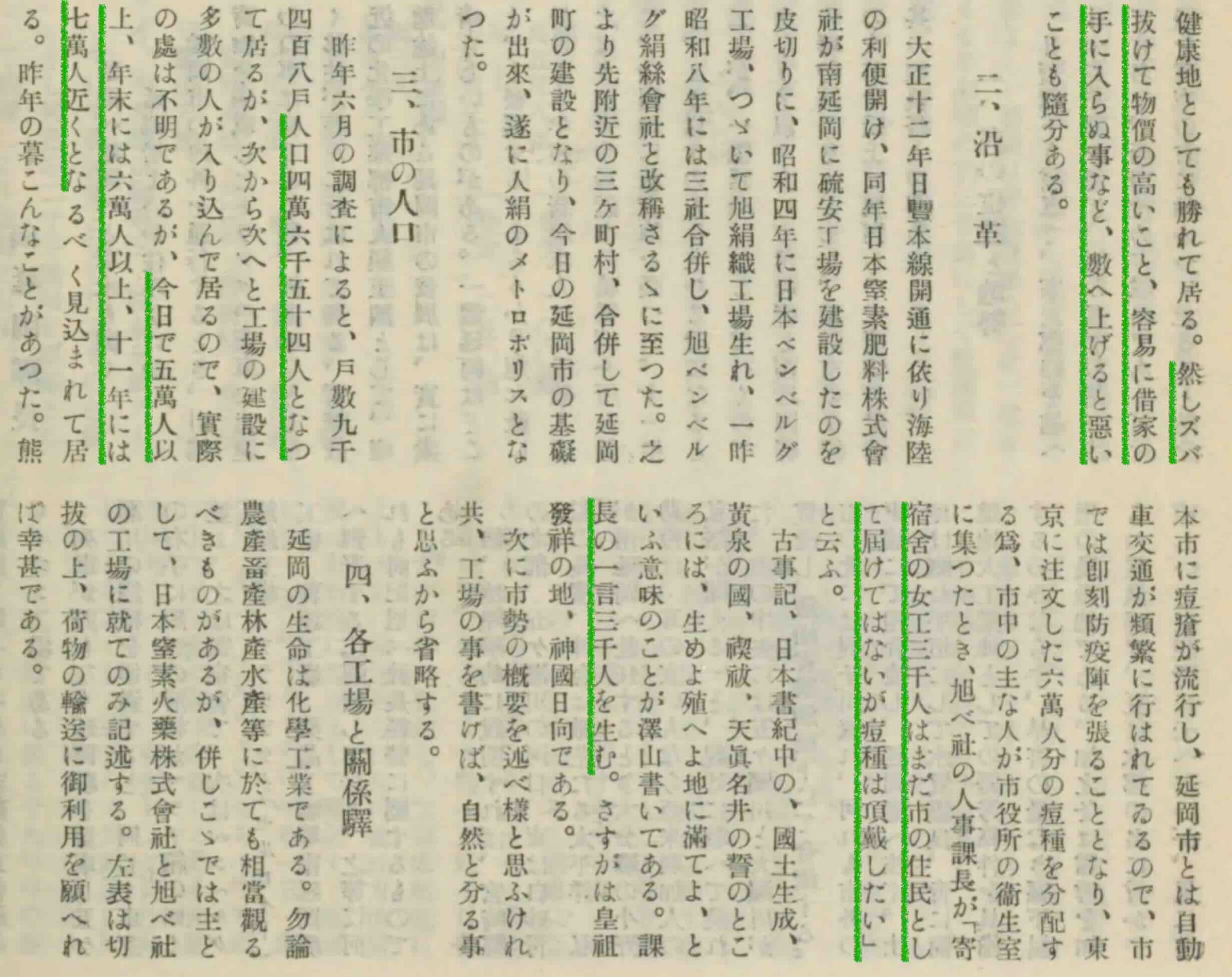 - 昭和9年6月には人口4万6千だったのが、今日で5万以上、年末には6万以上、そして昭和11年には7万人近くになるというのは、このころの延岡の勢いを示していますね。